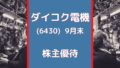 ダイコク電機株式会社の株主優待。取得株数及び保有年数に応じた額のQUOカードになります。2021年9月から優待が再開されました。