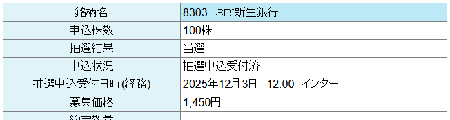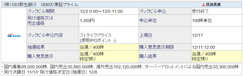 SBI新生銀行は今年2番目の大型IPOということで抽選配分数が多く、当選している人もかなりいるみたいですね。