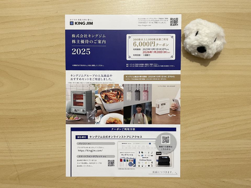 6月優待のキングジムから、株主優待が届きました。