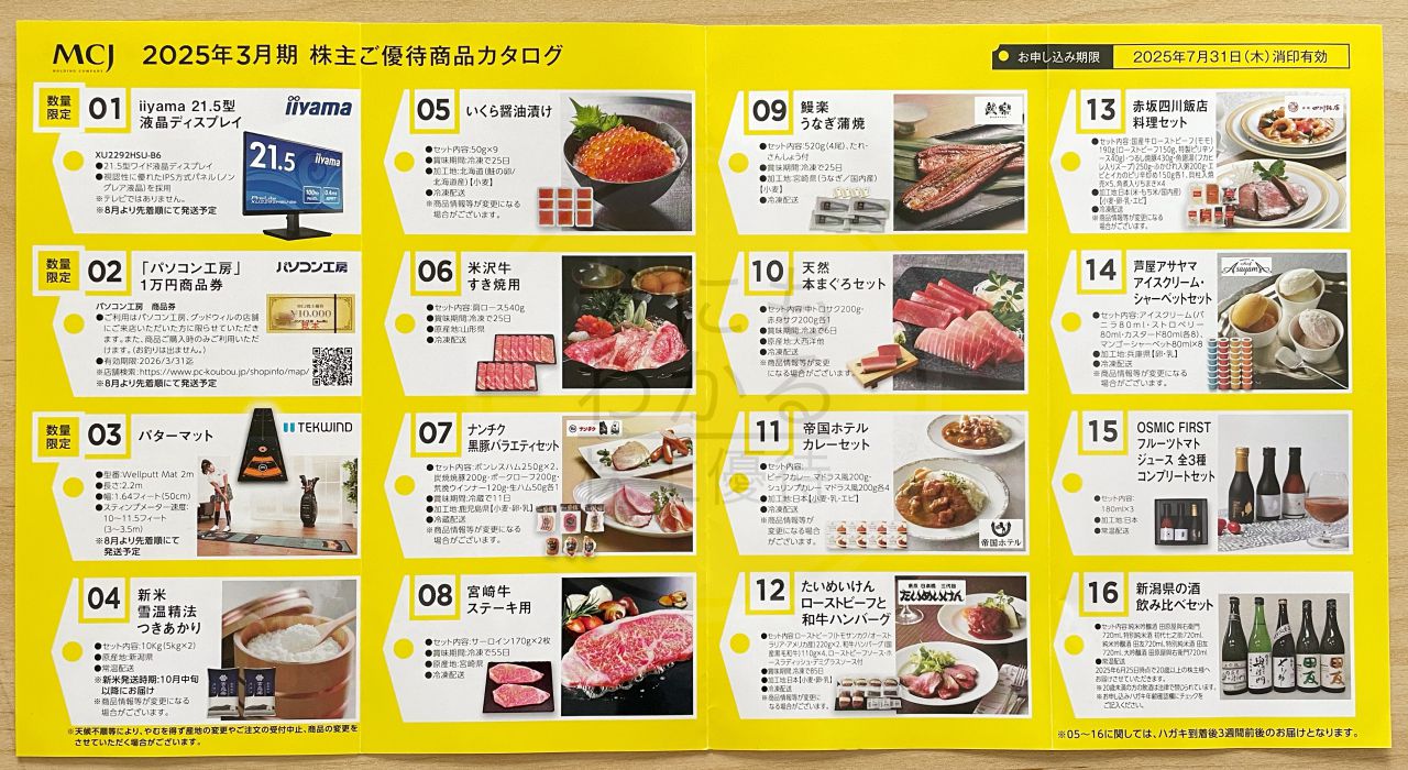 1,000株のカタログは10,000円相当なので豪華なラインナップでした。