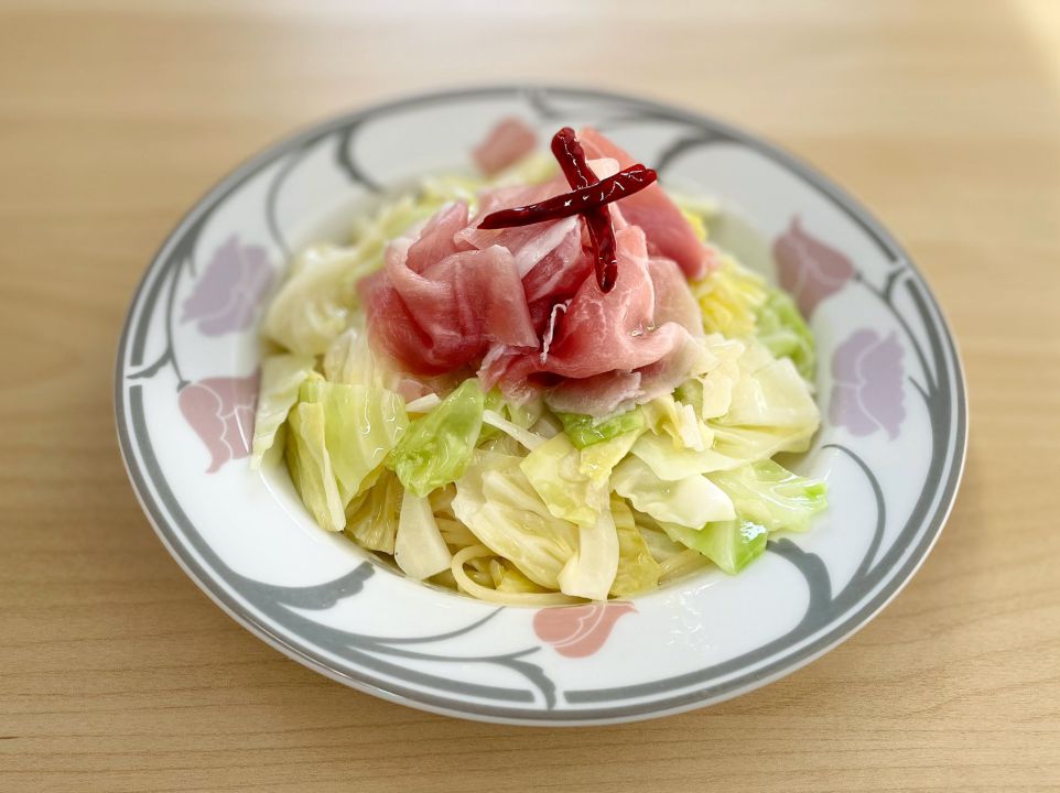 早速、生ハムを使ってキャベツと生ハムのペペロンチーノパスタを作りました♪