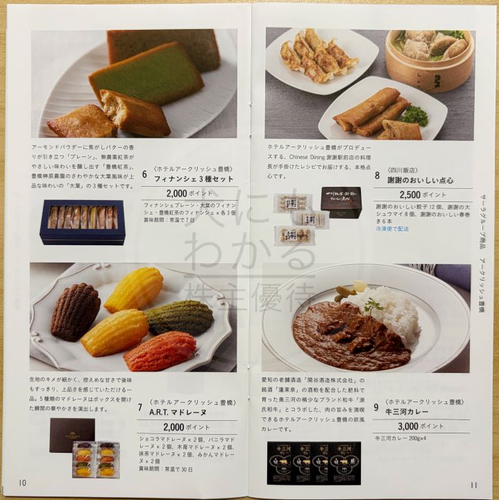 取得株数に応じて、優待券や食品などから選ぶことができます。