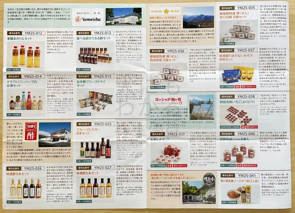 ヤマウラ(1780)株主優待 3,000円相当の信州の地場商品掲載のカタログ(3月末優待)